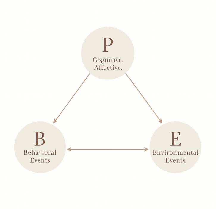This occurs within triadic reciprocal determinism: behaviour, personal characteristics, and environment all influence each other.